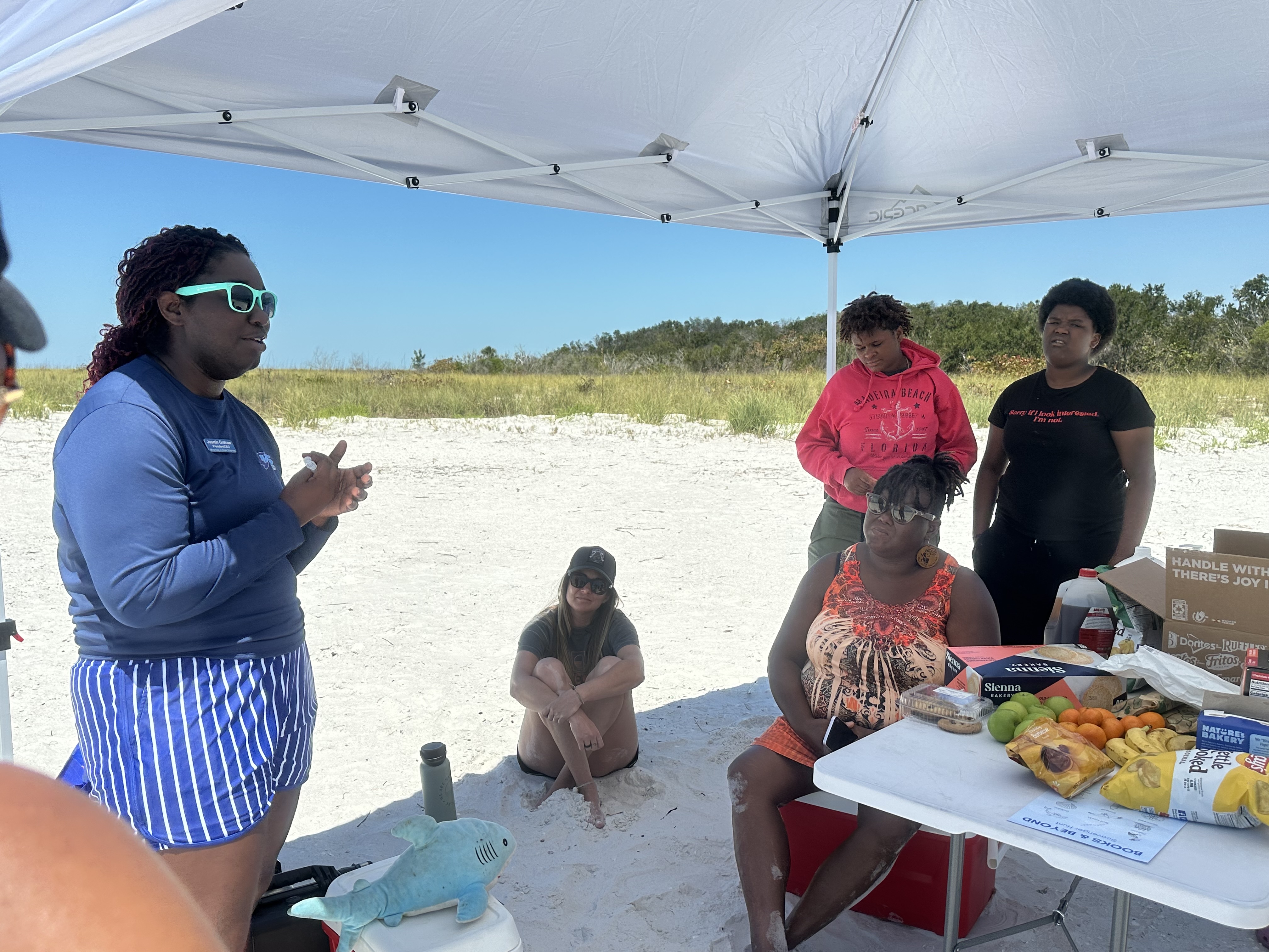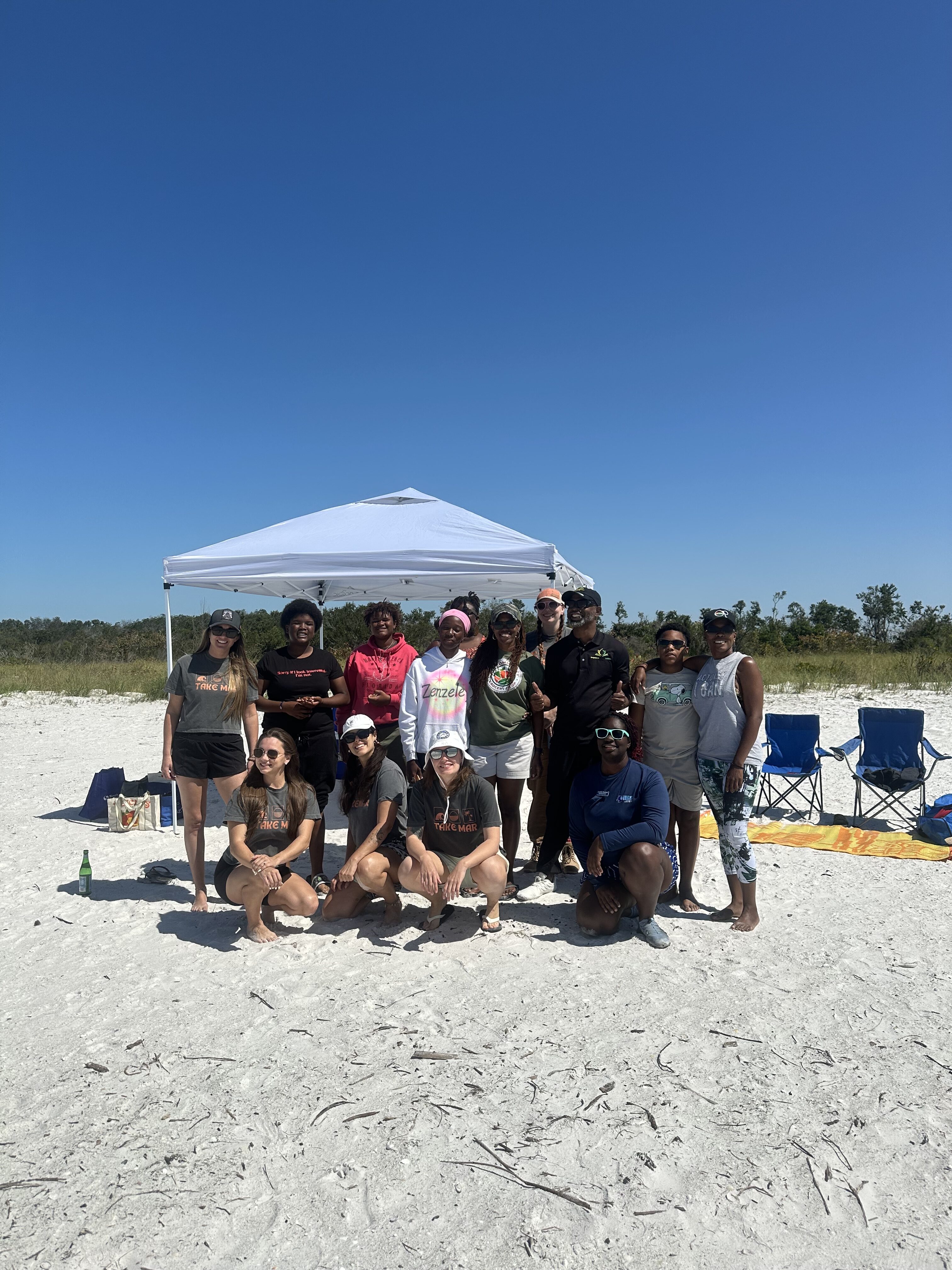 Once on Shell Key, we were welcomed with a generous and wholesome lunch provided by Erica with One Community Grocery Co-op. Her delicious spread ensured everyone had the energy to explore the island, collect seashells, and bond with each other while enjoying the escape of nature – in perfect alignment with Take MARs mission.