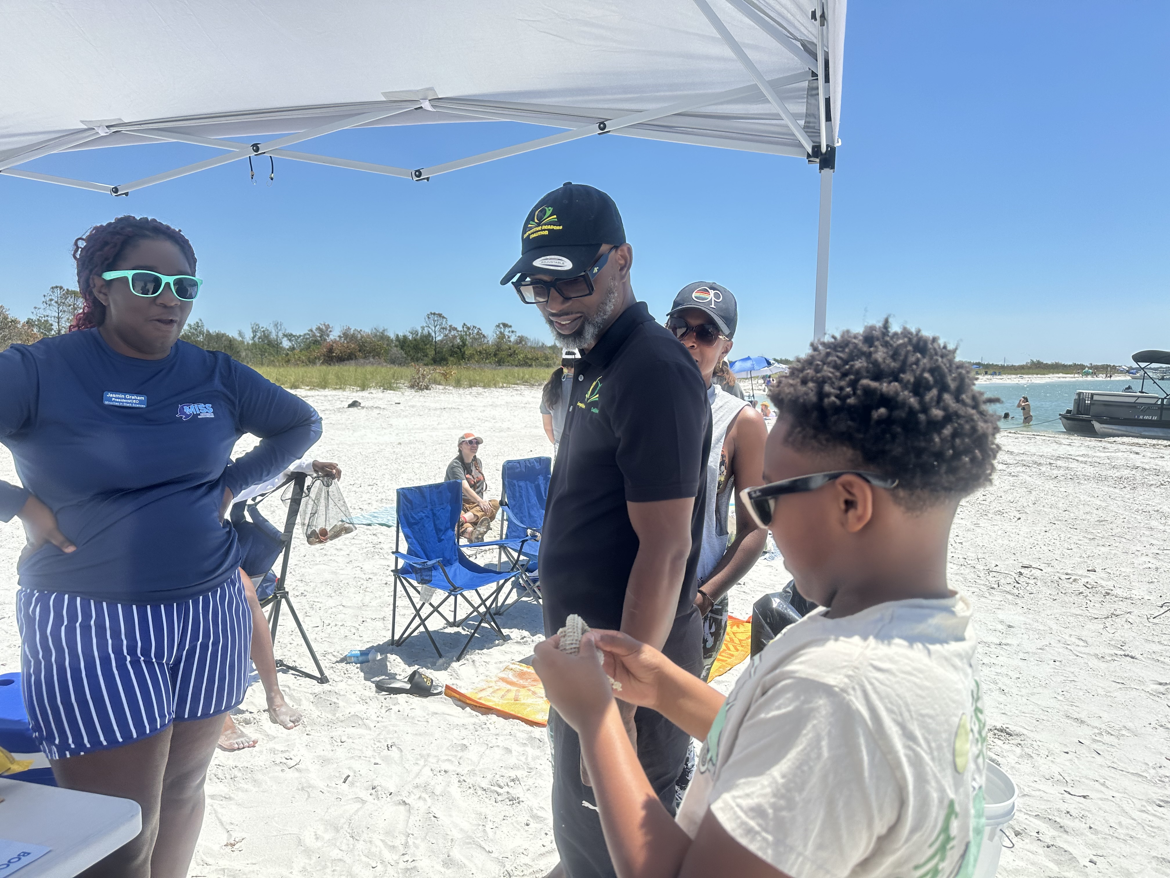 Our attendees set off on a ferry ride to the stunning shores of Shell Key. The weather was perfect, the sky clear, and the ocean sparkled beneath the sun. It was a dream backdrop for a day of celebration, learning, and exploration. The captain and crew were extremely engaging, and even gave some of the readers a chance to steer the ferry!
