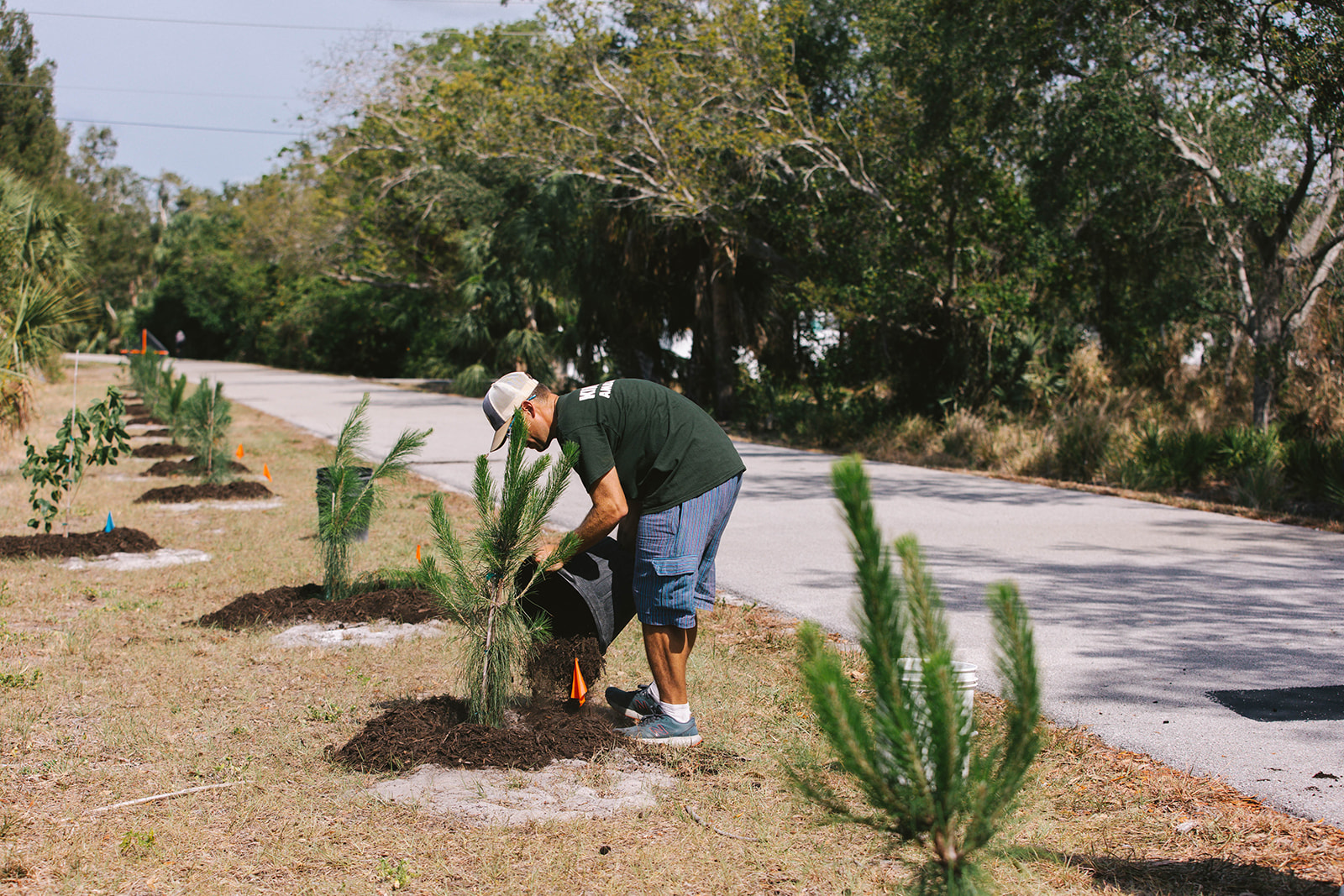 Every tree we plant along the Pinellas Trail helps strengthen our local environment. Native slash pines support wildlife, improve air quality, and bring back natural shade to the trail. Mulberries will one day provide food for birds and other species, while also creating a colorful and welcoming landscape for trail users.