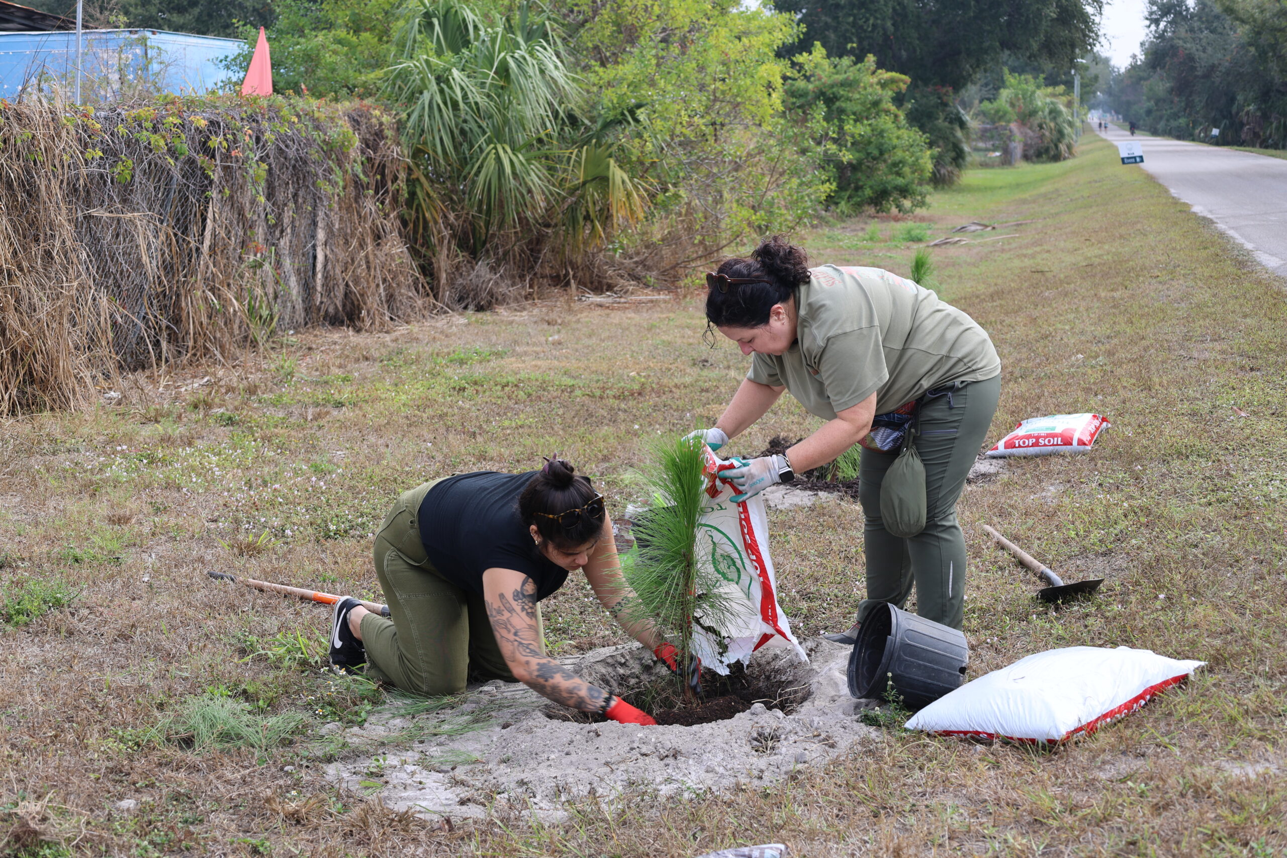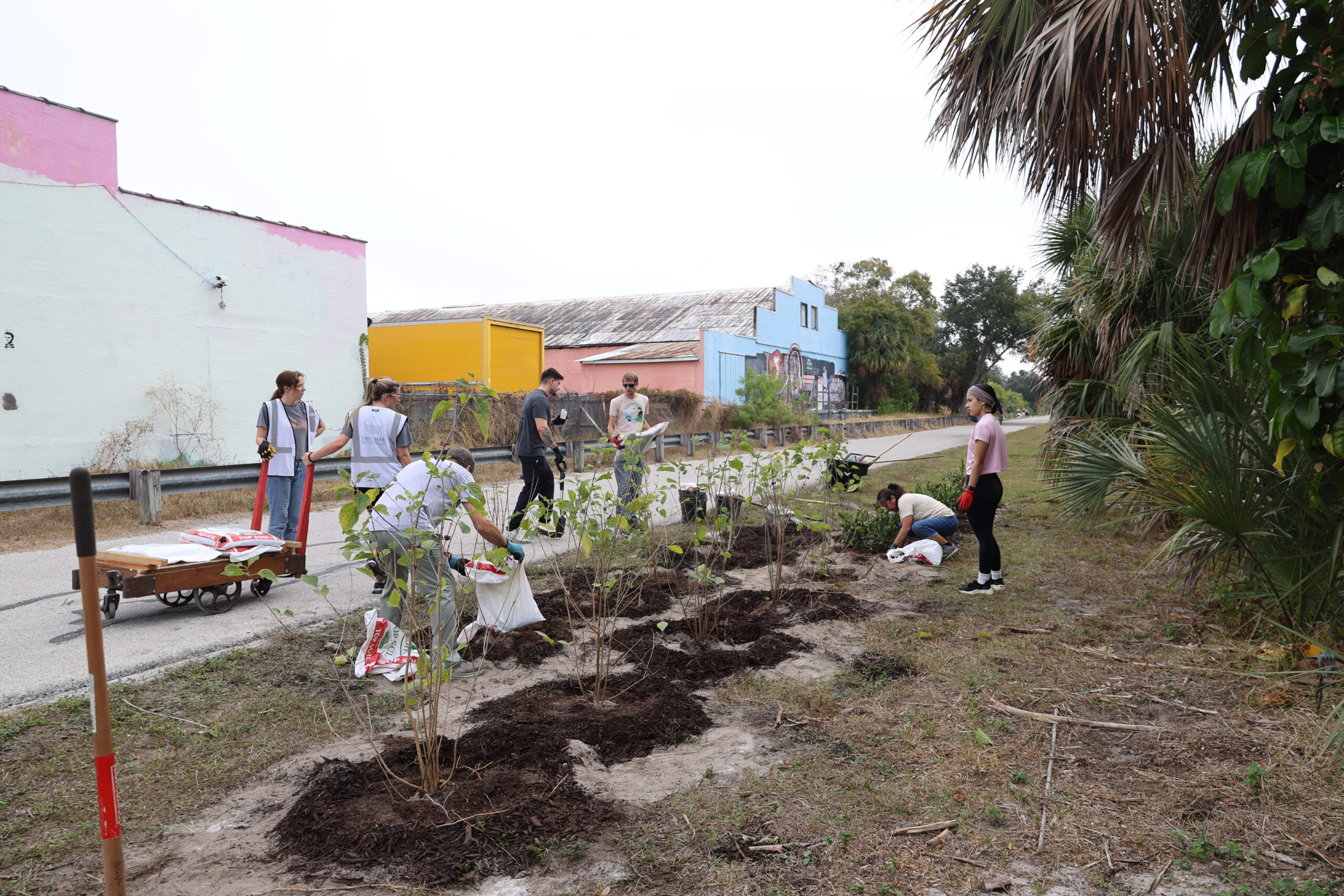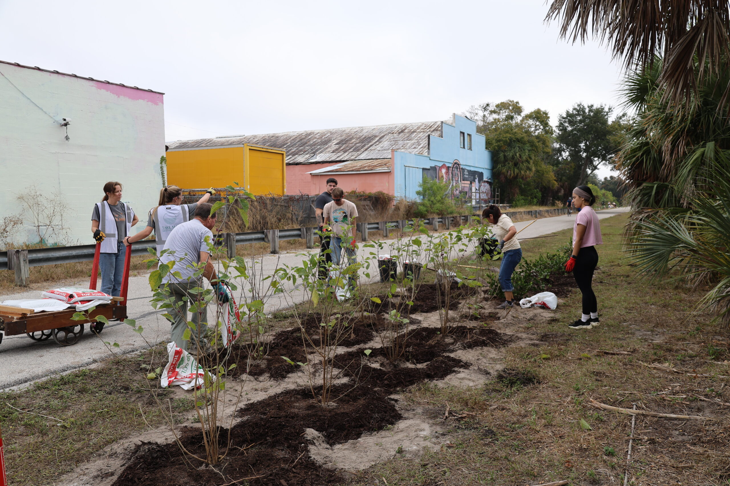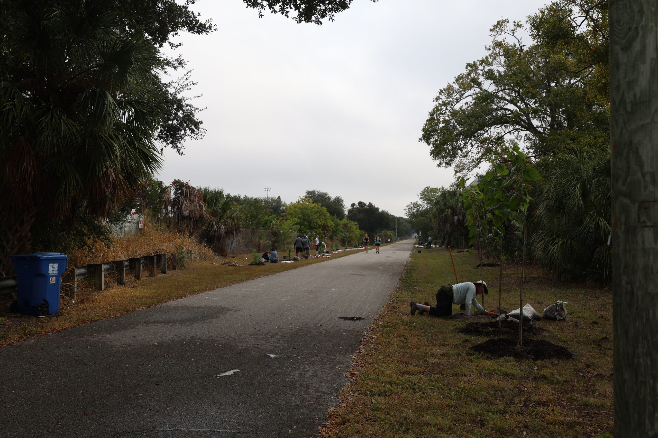 Adding more trees to this busy bike path is essential. The trail is exposed, sun-drenched, and often harsh, especially during Florida’s intense summers. Native species like slash pine, live oak, red cedar, and mulberry are built for these conditions. Their deep roots, drought tolerance, and resilience to salt and heat make them strong long-term contributors to canopy growth. As they mature, these trees will cool the pavement, provide much-needed shade for trail users, and create habitat for a wide range of wildlife. The shrubs we added help stabilize the soil, protect young trees, and strengthen the multi-layered structure of the ecosystem.