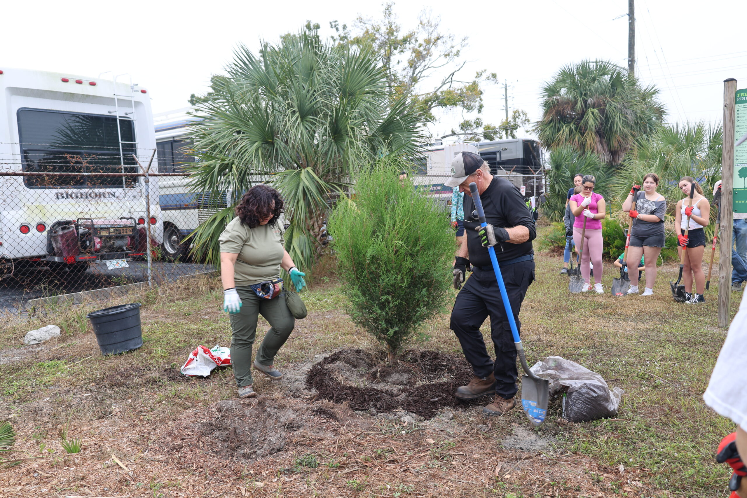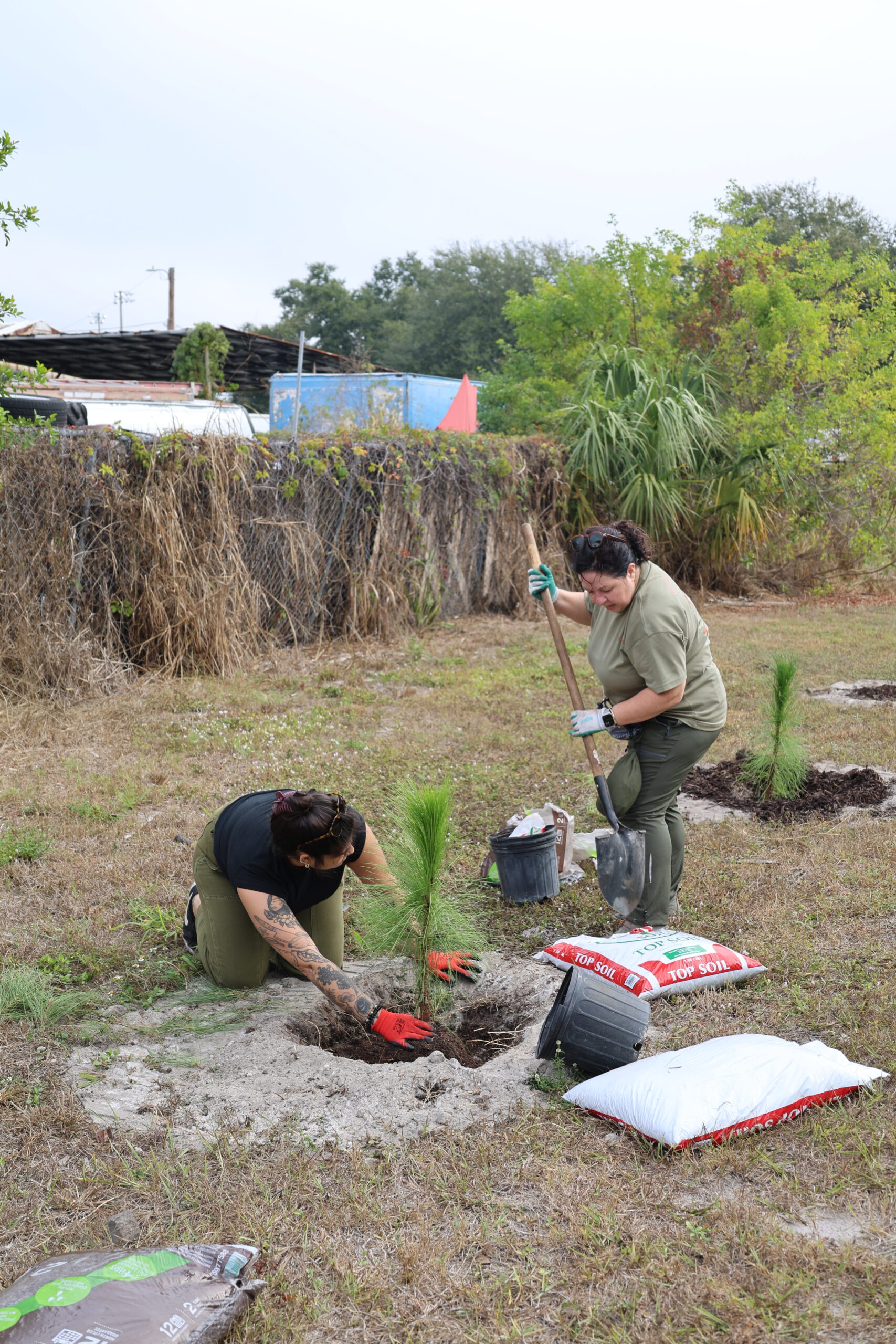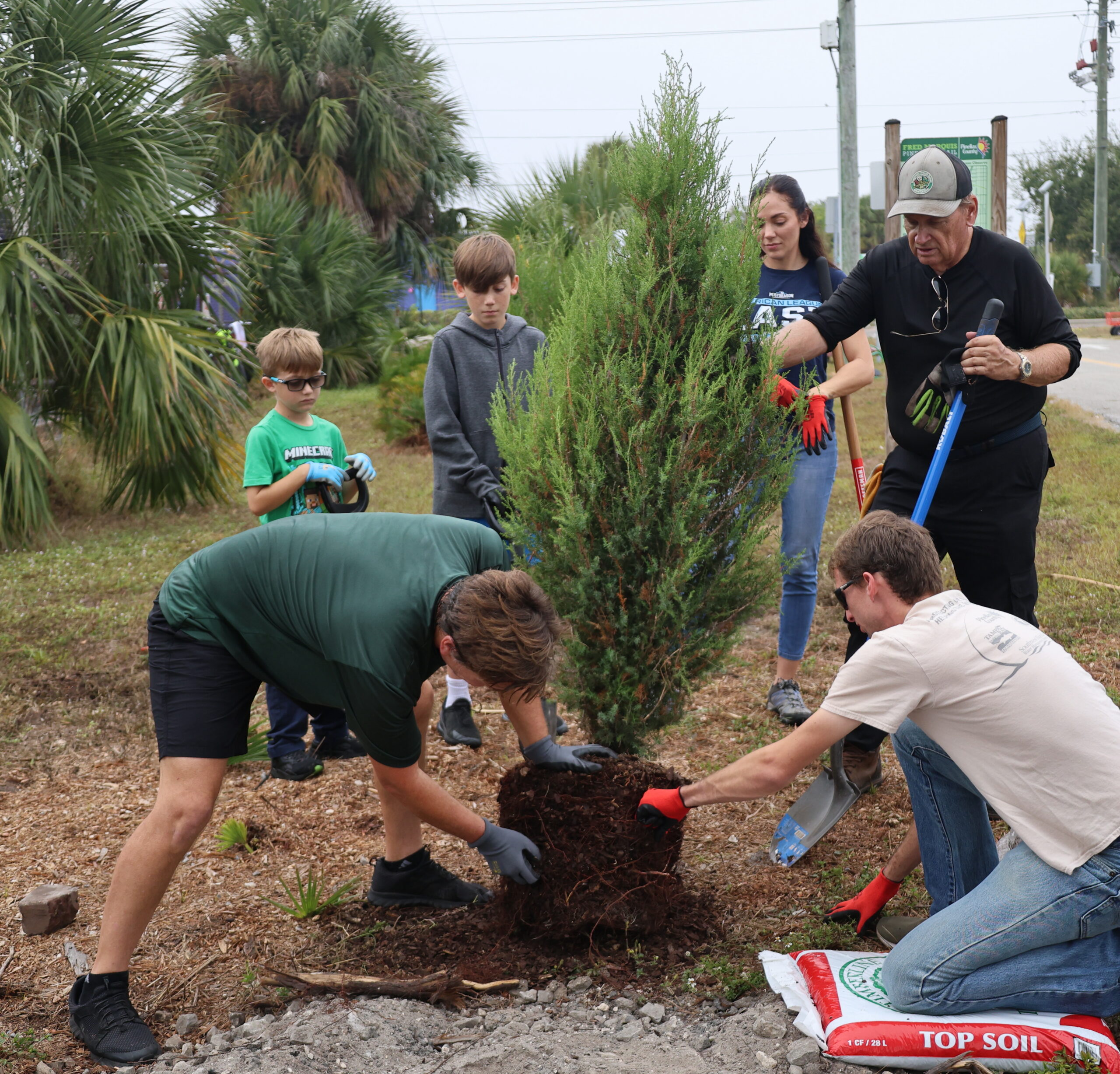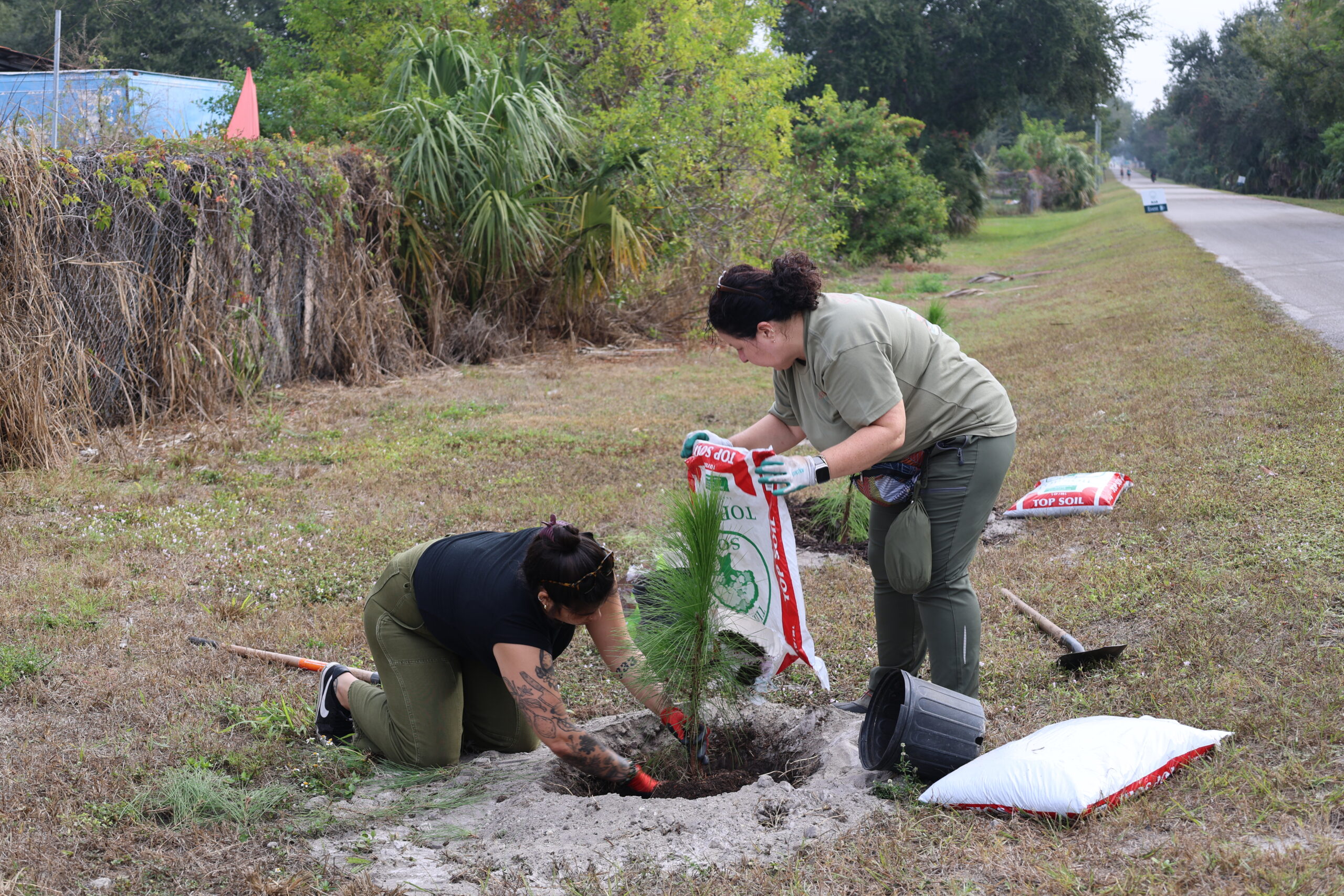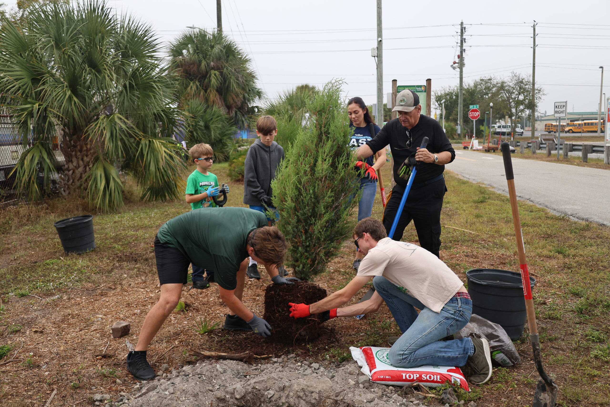 Adding more trees to this busy bike path is essential. The trail is exposed, sun-drenched, and often harsh, especially during Florida’s intense summers. Native species like slash pine, live oak, red cedar, and mulberry are built for these conditions. Their deep roots, drought tolerance, and resilience to salt and heat make them strong long-term contributors to canopy growth. As they mature, these trees will cool the pavement, provide much-needed shade for trail users, and create habitat for a wide range of wildlife. The shrubs we added help stabilize the soil, protect young trees, and strengthen the multi-layered structure of the ecosystem.