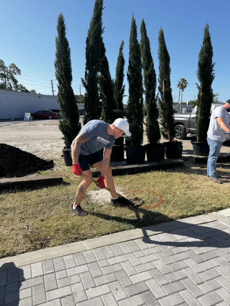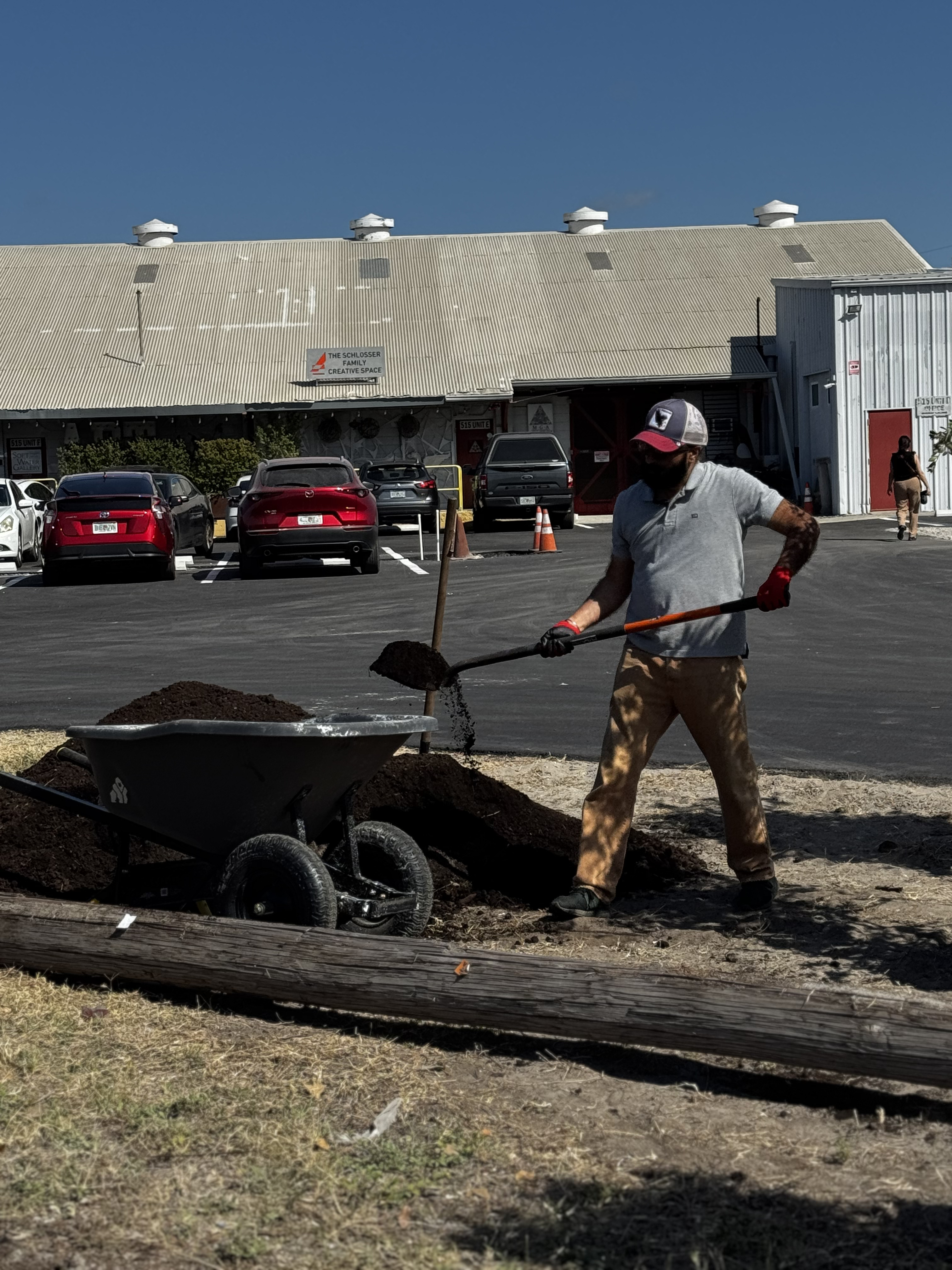 The pink tabebuia will stand out as a signature feature that blooms bright pink in winter and spring and adds a bold touch to the district’s artistic landscape. Getting these large trees into the ground took teamwork, and a forklift! But thanks to the strength and enthusiasm of the crew, everything went smoothly, and the space is now greener, cooler, and even more inviting.