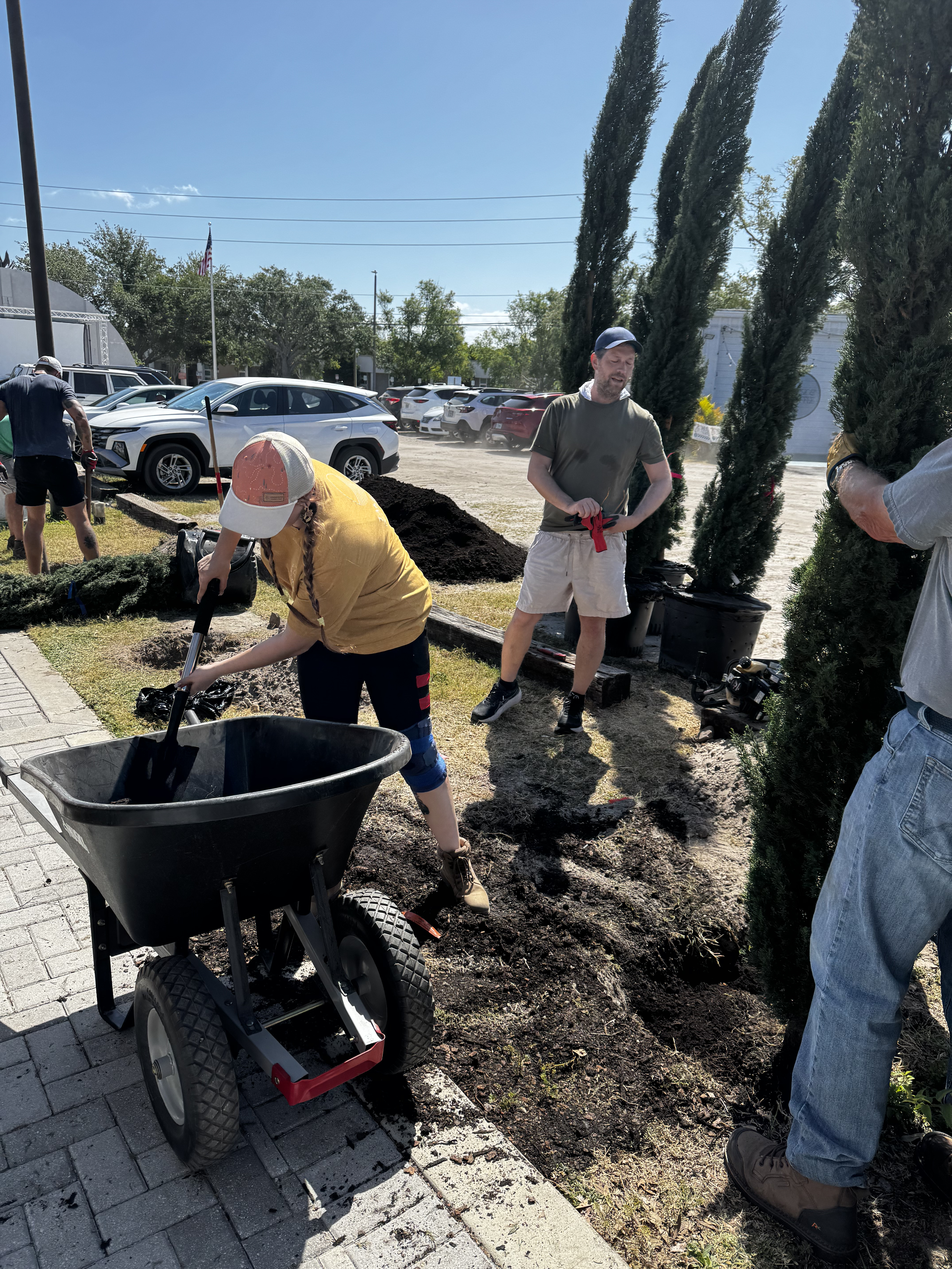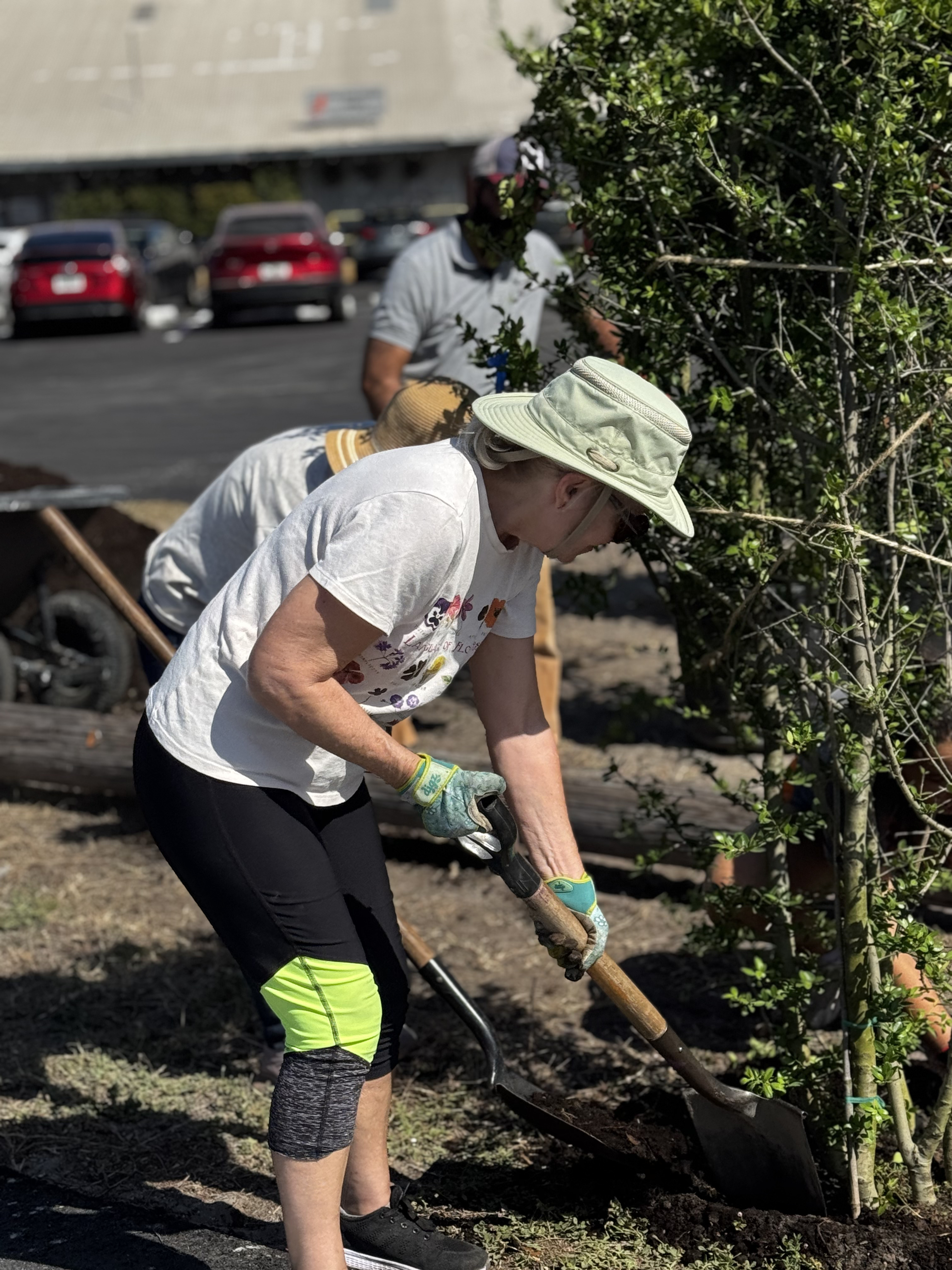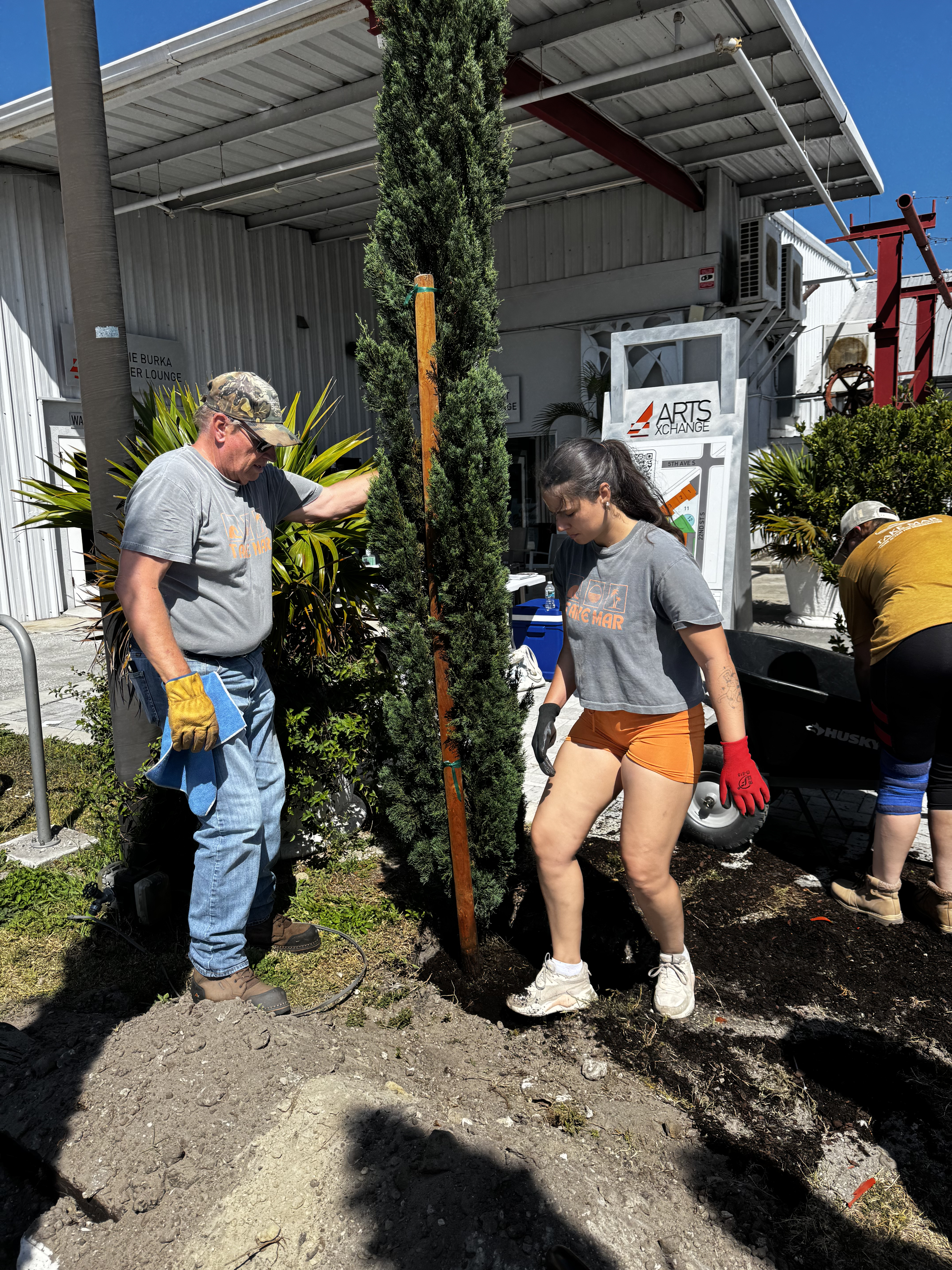 A few weeks later, the Take MAR team returned to the Warehouse Arts District for Round 2 of tree planting, adding the finishing touches to this growing green space. This time, we went big—literally. With the help of a volunteer crew, we planted: