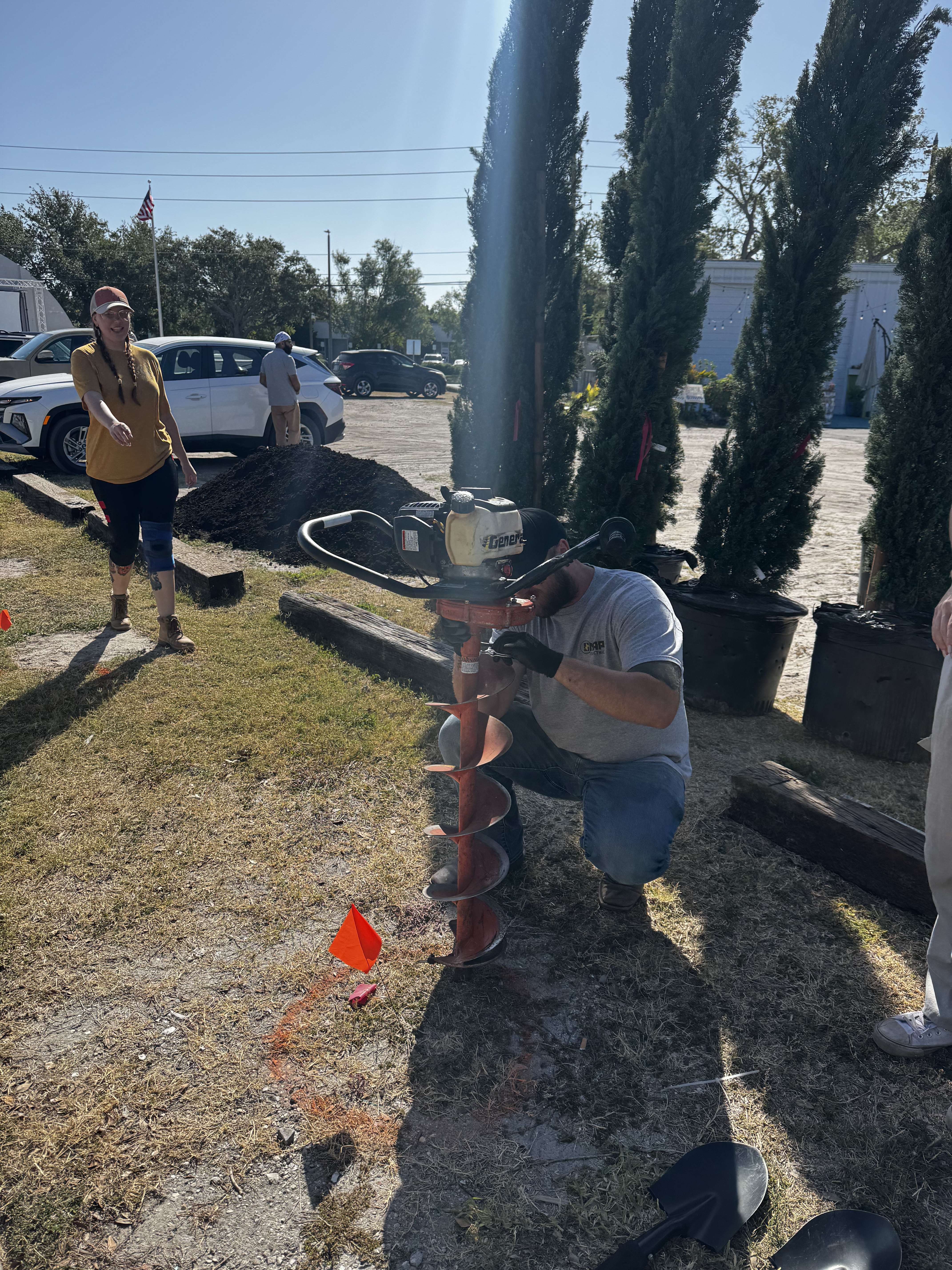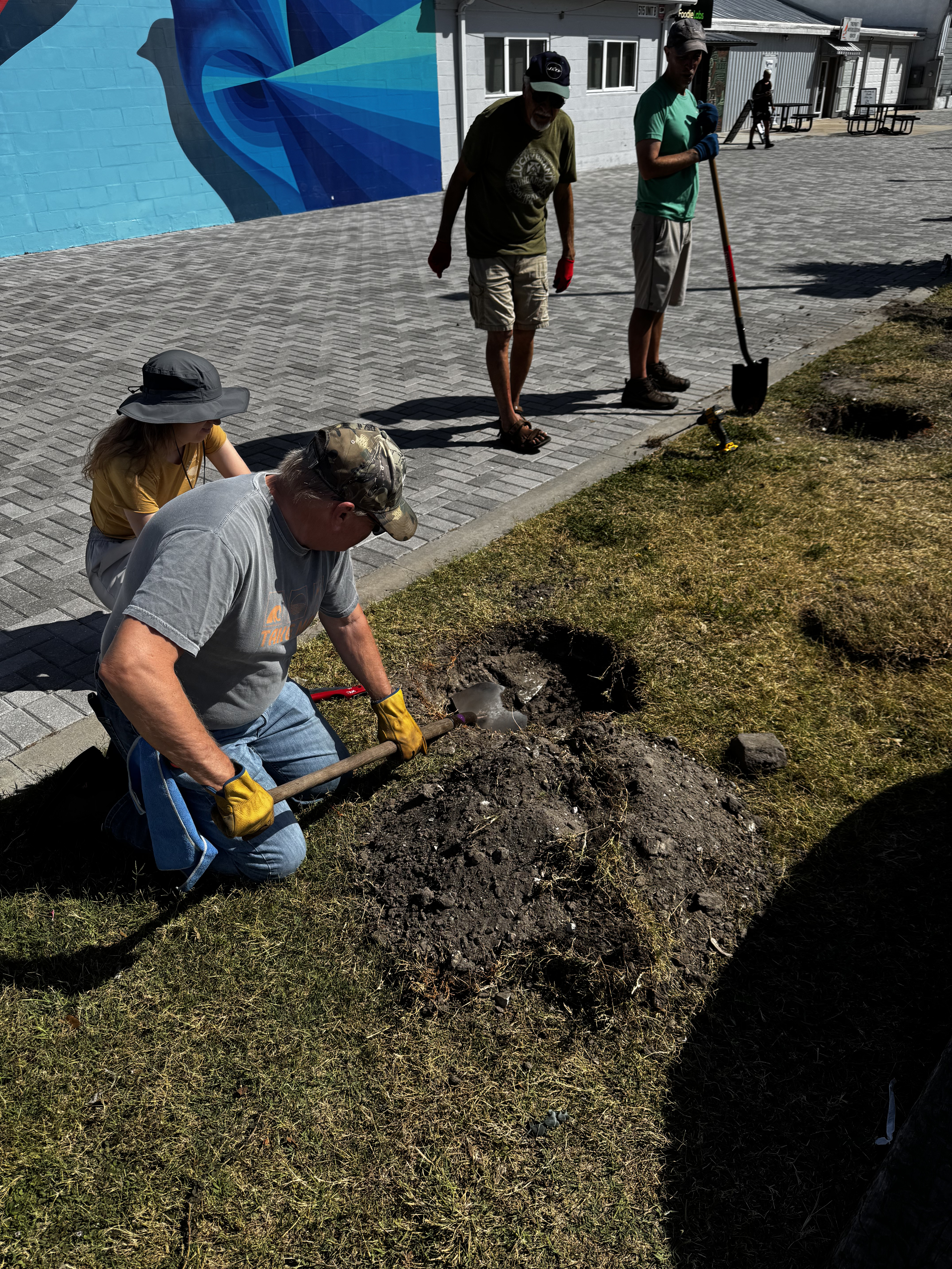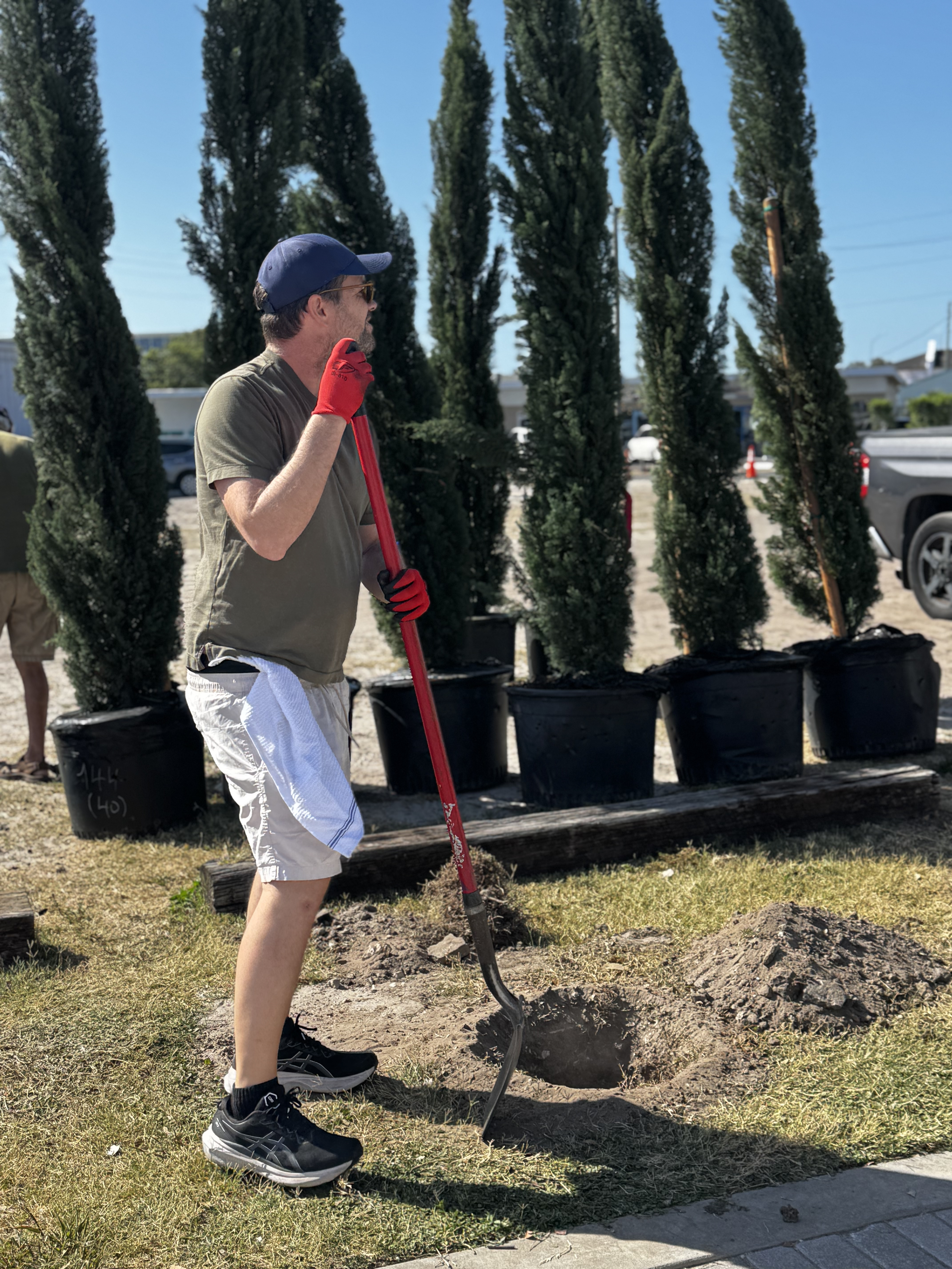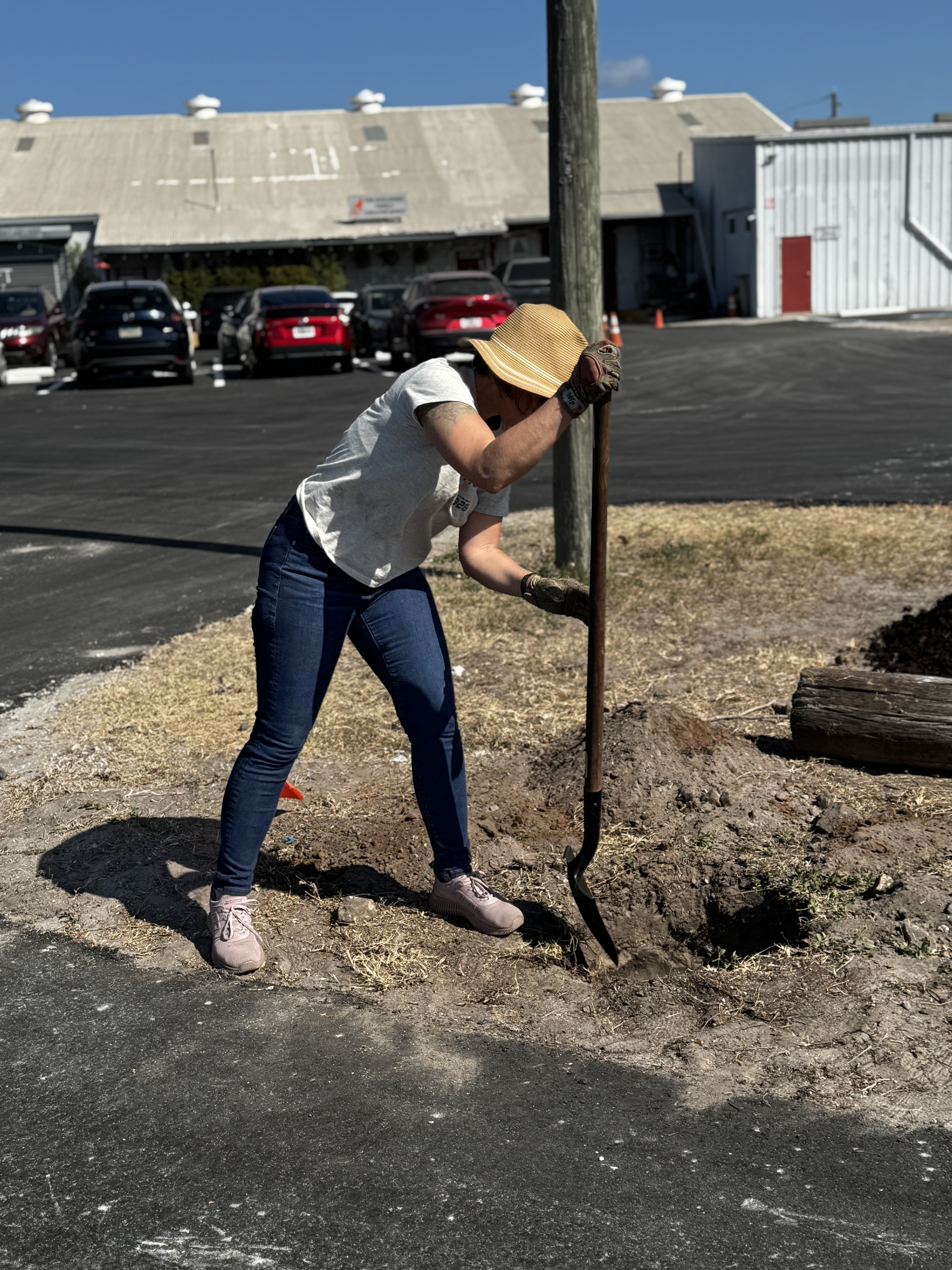 A few weeks later, the Take MAR team returned to the Warehouse Arts District for Round 2 of tree planting, adding the finishing touches to this growing green space. This time, we went big—literally. With the help of a volunteer crew, we planted: